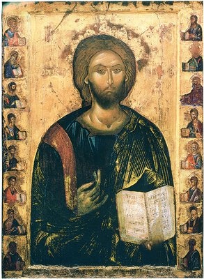Самая древняя из сохранившихся до наших дней икон относится к концу 13-го века и находится в Македонии в церкви Богородицы Перивлепты. Этот образ является, пожалуй, и самым известным среди икон этого типа. Рядом со Спасителем на нем стоят пророки Аваакум и Иезекииль, которым согласно Священному Писанию, являлся Ангел, несущий свет. Над головой Иисуса Христа изображена мандорла – особое сияние, а в руках он держит крест и свиток с текстом.