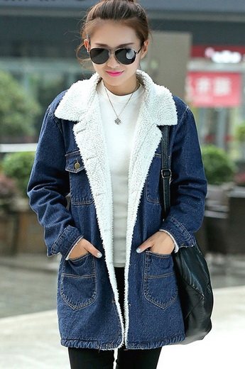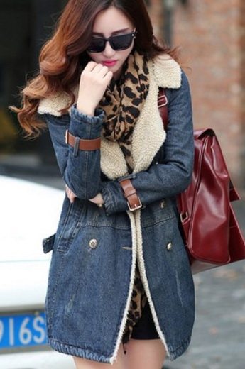 Женская теплая джинсовая куртка с мехом может быть удлиненной, в таком случае верхняя одежда подарит еще больший комфорт своей обладательнице.