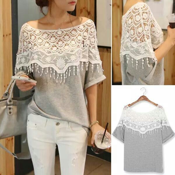 Преобразят футболку вставки из гипюра. Из прямой майки таким образом можно сделать свободную «разлетайку», увеличить размер сбежавшегося после стирки джемпера.