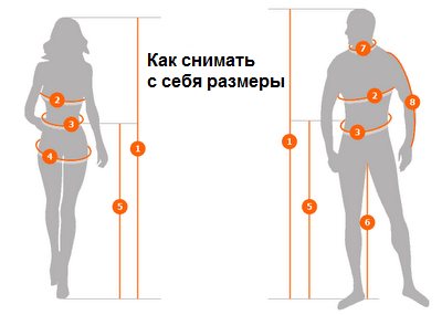 Для измерения размера верхней одежды обычно используют обхват груди. Чтобы его измерить, нужно обвести сантиметровой лентой вокруг грудной клетки как показано на рисунке по линии 2.