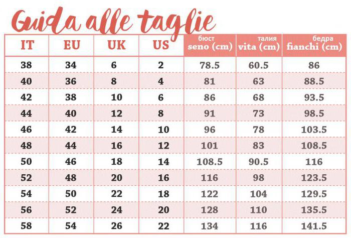 Таблица соответствия итальянских и российских размеров одежды