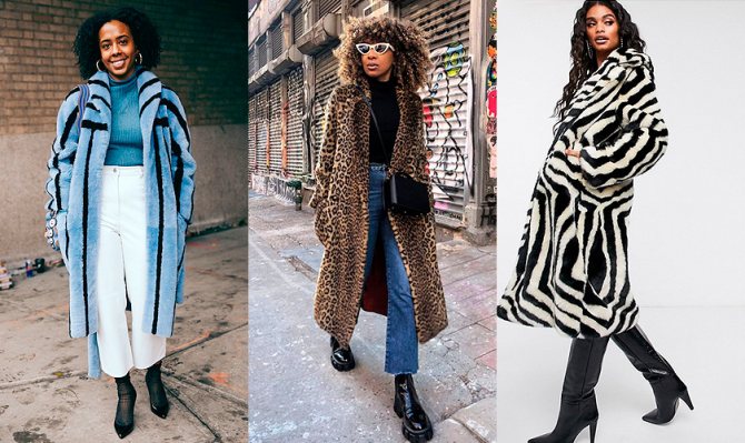 Трендом являются принтованные или комбинированные шубы. Особо популярен анималистичный принт: леопард и зебра. Его выберут самые смелые девушки, которые хотят быть в центре внимания.