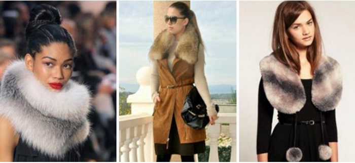 Можно носить на пальто. На пальто А-образного фасона лучше надевать воротничок с коротким или умеренным ворсом. Длинный, объемный воротник подойдет к пальто делового стиля.