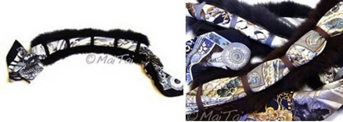- В примере показана работа с хвостиками, но с любыми кусочками ситуация аналогичная! Вы пришиваете полоску меха, полоску кожи. И так чередуете до нужной длины (примерно 70 см).