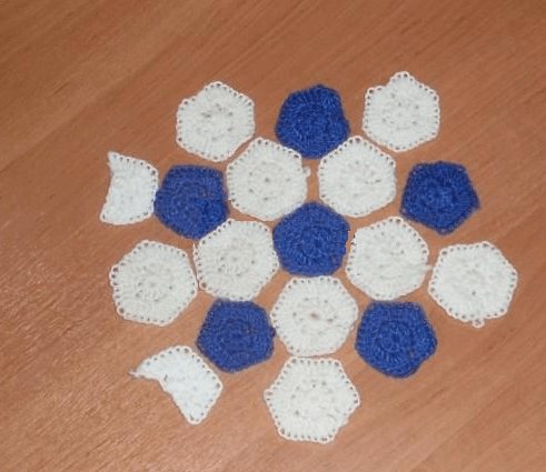 Готовые шестиугольники сшиваются между собой. К кепочке присоединяется вязаный козырек и после этого изделие обвязывается ст. б/н.