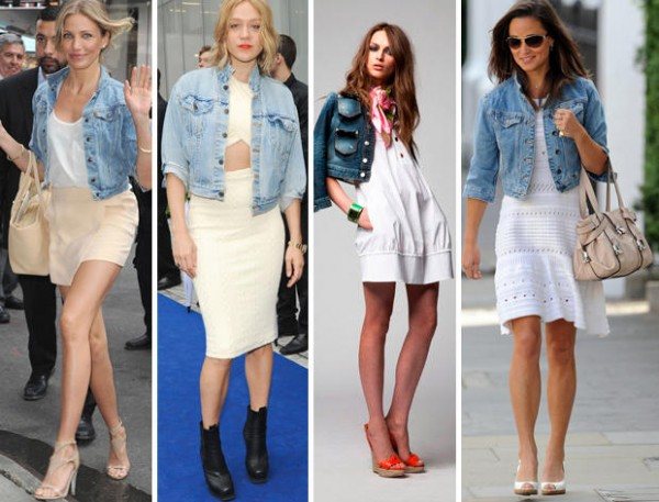 Белый цвет всегда был символом света, добра, чистоты и невинности. Чтобы создать более серьезный образ, из которого не хочется исключать платье белого цвета, его смело можно дополнить синей или голубой джинсовой курткой из денима.