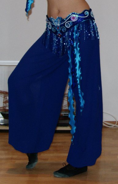 Большое значение в восточном костюме имеет пояс, повязываемый на бедра. Бахрома, струящиеся бисерные нити акцентируют внимание на движениях бедер и живота танцующей девушки, подчеркивают плавность и грациозность ее изгибов тела. Так что заключительном штрихом при изготовлении костюма для восточного танца своими руками будет именно пояс.