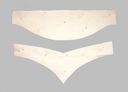 Заворачиваем края, в нужных местах делаем разрезы. Прикалываем булавками, а затем прошиваем по аналогии.