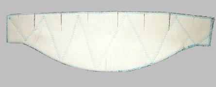 На ткань приклеиваем утюгом флизелин. Чтобы пояс получился более прочным, рекомендуется хлопковую ткань проложить в два слоя. Все слои сшиваются зигзагообразным швом, края также необходимо обработать.