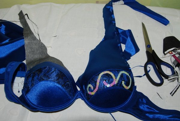 Вырезаем и пришиваем заготовки к лифчику.
