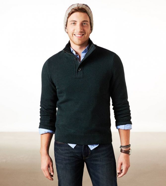 - Если вы надеваете свитер и рубашку, рукава рубашки должны быть спрятаны и не видны. Как вариант, сделать их вровень, чтобы не допустить свисания сжатого рукава свитера поверх жесткого манжета рубашки.
