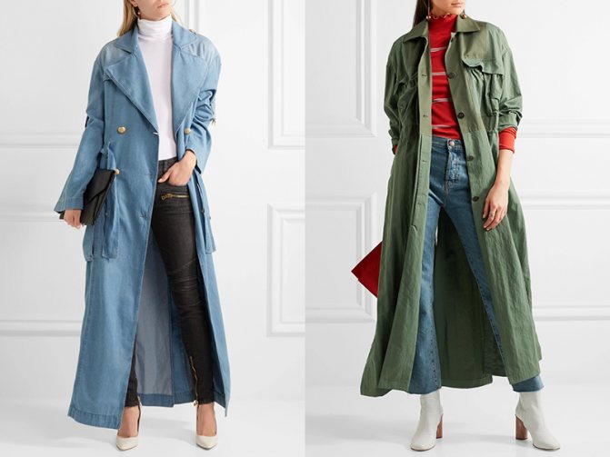 Приталенные изделия составят идеальную пару с высокими сапогами, ботильонами или туфлями на замочке. Свободного кроя средней длины плащи можно смело соединять с тимберлендами, кроссовками или ботинками на удобной амортизирующей подошве.