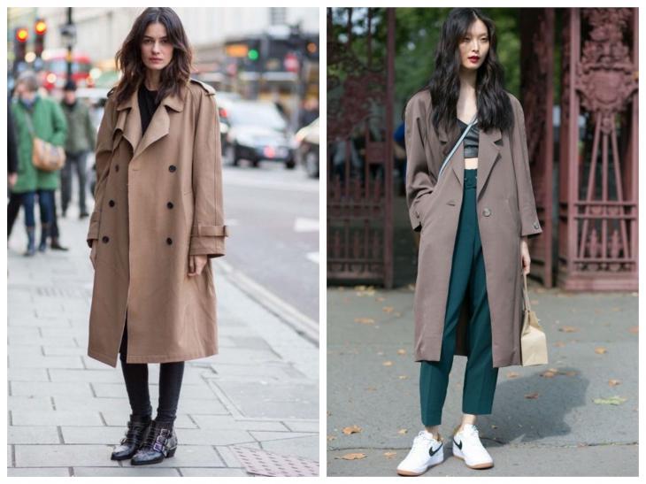 Кроме того, нужно обязательно учитывать фасон и стиль плаща. Сегодня актуально смешение стилей, но все же во всем нужно знать меру. К примеру, сочетание женственного расклешённого плаща в стиле «нью лук» с кроссовками будет выглядеть просто нелепо.
