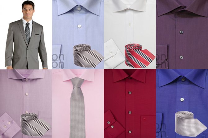 - рубашки из цветовой гаммы белого, слоновой кости, голубого, розового оттенков, а также более яркие васильковые, красные, сиреневые и лиловые цвета. Выбор рубашки для серого костюма в большей мере будет зависеть от торжественности события;