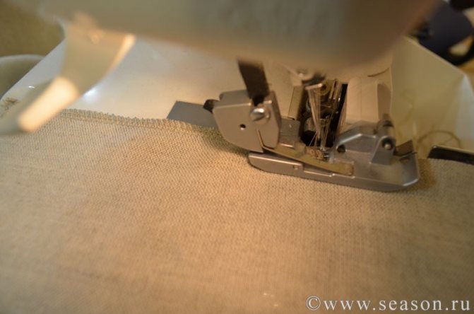 — Обметайте срезы мешковины кармана (строчка 5).
