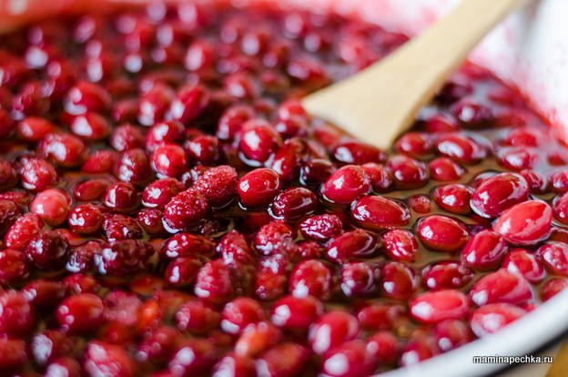 - После истечения отведённого срока отправьте посуду с содержимым на плиту, томите после закипания 10 минут. Ягоды уже прилично размякнут, поэтому не перемешивайте их. Лишь слегка встряхивайте тару.