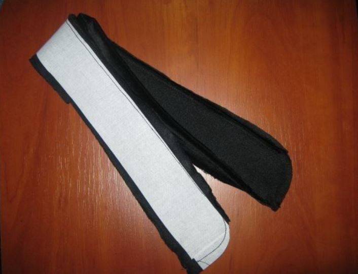 Вырезаем две заготовки для воротника стойки. Сострачиваем их, выворачиваем, одну из сторон укрепляем прокладкой.