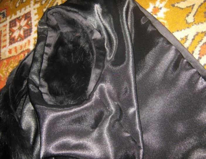 Третью шкурку пришиваем к плечам, из полоски меха делаем воротник стойку. Пришиваем подкладку к воротнику.
