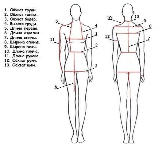 Чтобы сделать выкройку футболки, необходимо правильно снять мерки. Обмеряемый должен стоять прямо, не напрягаться. На фигуре допускается наличие тонкой одежды, не дающей чрезмерной прибавки в объемах. Мерки для женщин и мужчин одинаковые: