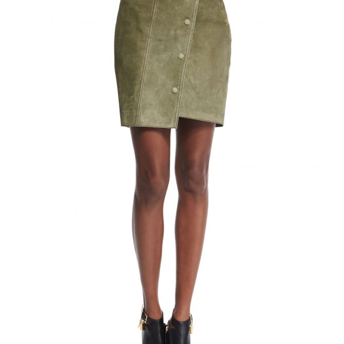 Мини юбка цвета хаки, образ с показа Александра Вотье.