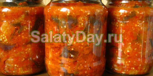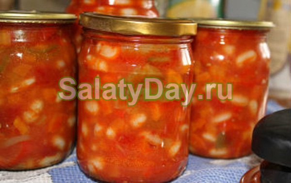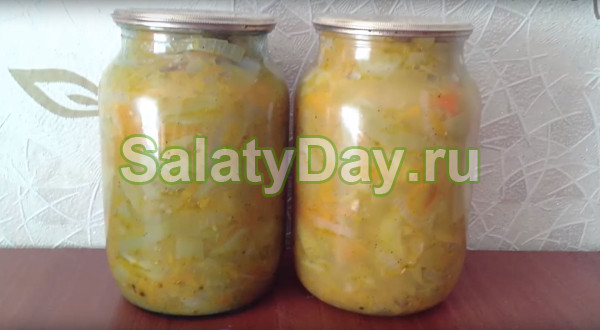 Готовый салат разливаем в подготовленные банки и закатываем.