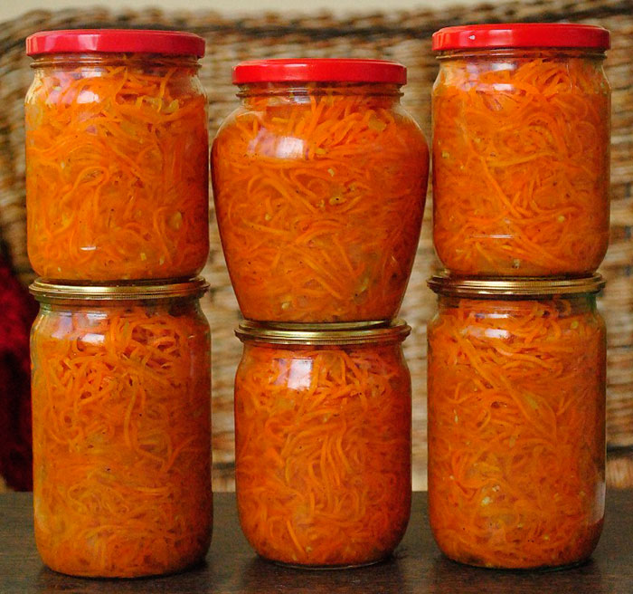 На данный момент насчитывается достаточно много способов заготовления моркови. Один из них — это консервированный салат из моркови на зиму. Такая консервация — это просто находка зимой. Во-первых, такой салат можно употреблять в пищу, как самостоятельное блюдо, в качестве перекуса. Во-вторых, салат из моркови не редко используется, как основа зажарки для первых блюд. В-третьих, такая консервация станет прекрасным дополнением к любому мясному, или рыбному блюду.
