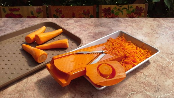 - Помытые овощи нужно освободить от хвостиков и плодоножек, натереть на крупной терке, можно воспользоваться кухонным комбайном со специальной шинковкой;